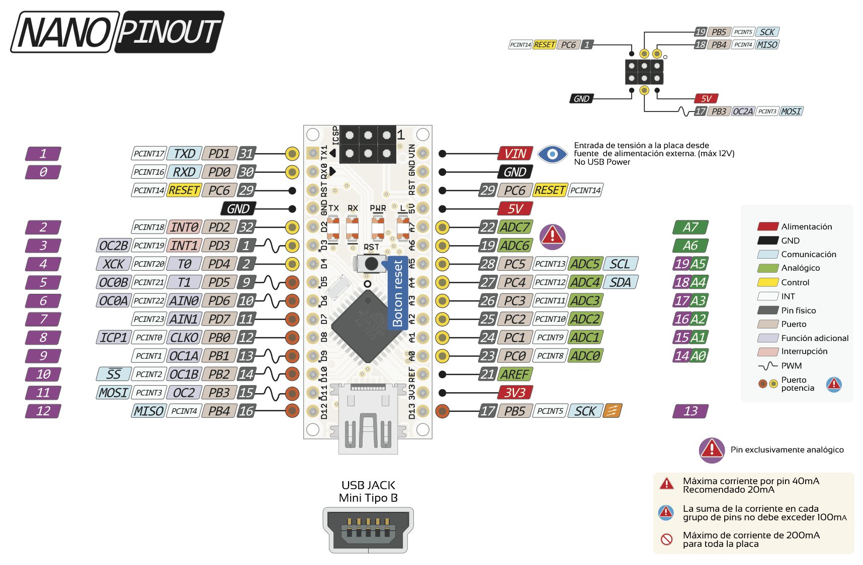 Arduino 2021-03-24 Pinouts de placas ARDUINO Arduino UNO Arduino NANO Arduino PRO MINI Arduino MEGA Arduino MICRO ATMEGA328P