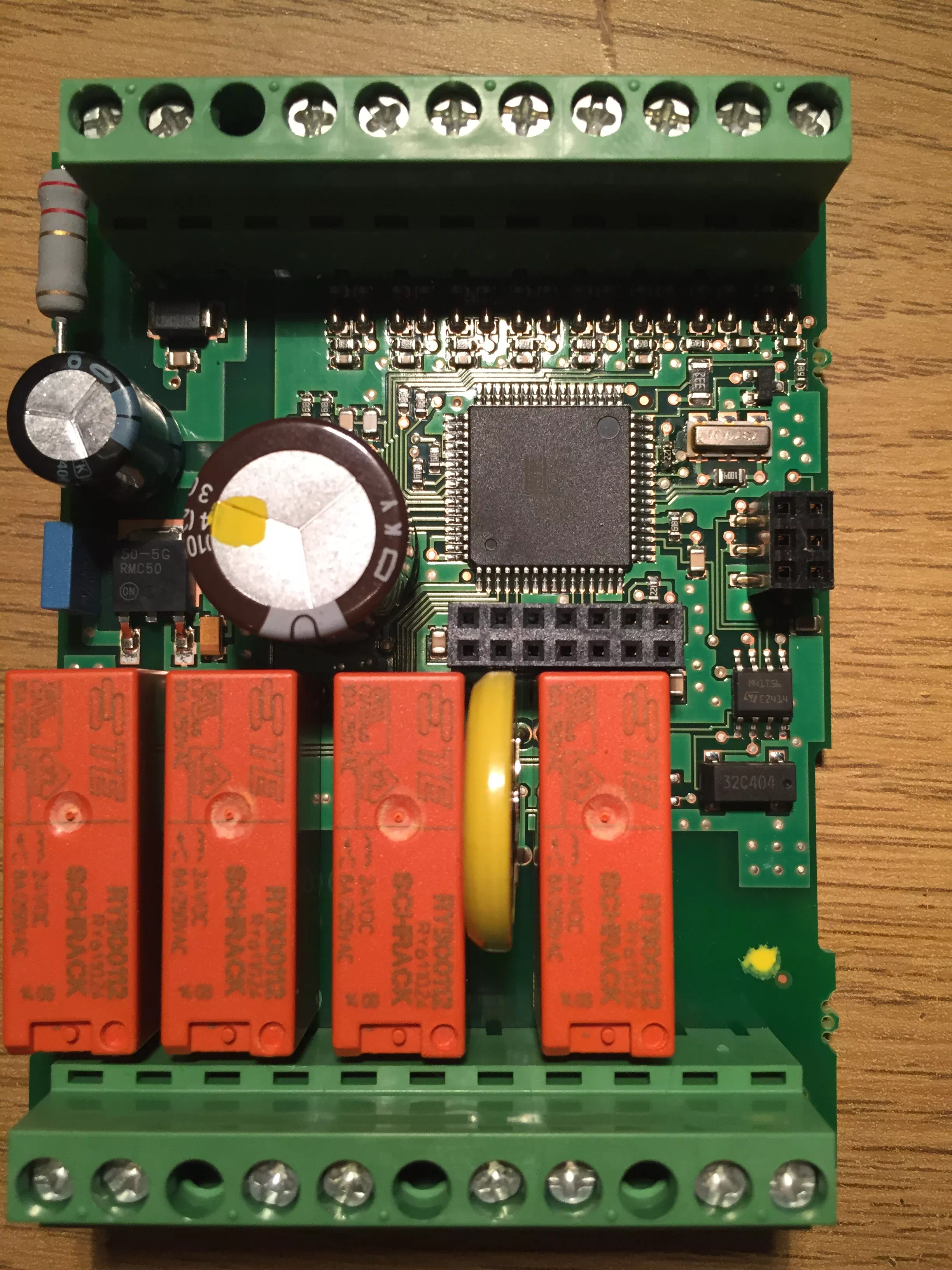 Una de las cosas mas llamativas del Zelio es su hardware que no deja de ser muy simple. Las entradas no están siquiera optoacopladas si no que simplemente son divisores resistivos con filtro RC. Las salidas, igualmente, se basan en un simple transistor que ataca a un relé. Todos disponen de un reloj RTC para guardar la hora y un display con botones para programar el dispositivo.